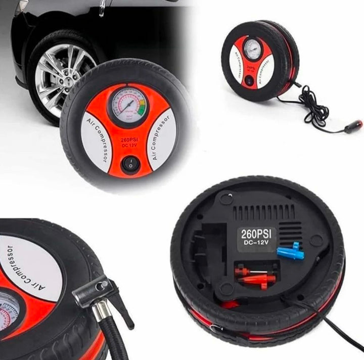 Powered by your carâs 12V cigarette lighter socket, this compressor delivers up to 260Â PSI of pressure, ensuring quick and efficient inflation of car tyres, bike tyres, bicycle tyres, and more. Its versatile design makes it equally effective for inflating sports equipment such as footballs, basketballs, and inflatable toys.