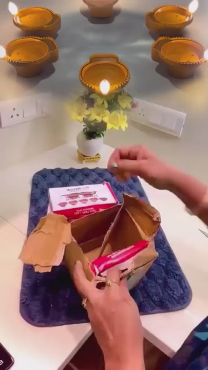 Water Sensor Technology: Each diya glows instantly when water is added – no oil, cotton, or matchsticks required. Simply pour water and watch your diyas illuminate beautifully.